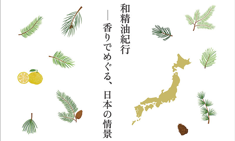 「和精油紀行―香りでめぐる、日本の情景」は、日本で育った植物から生まれた「和精油」の香り体験を通じて、各地の風土や特産物の魅力を再発見していただく企画展です。